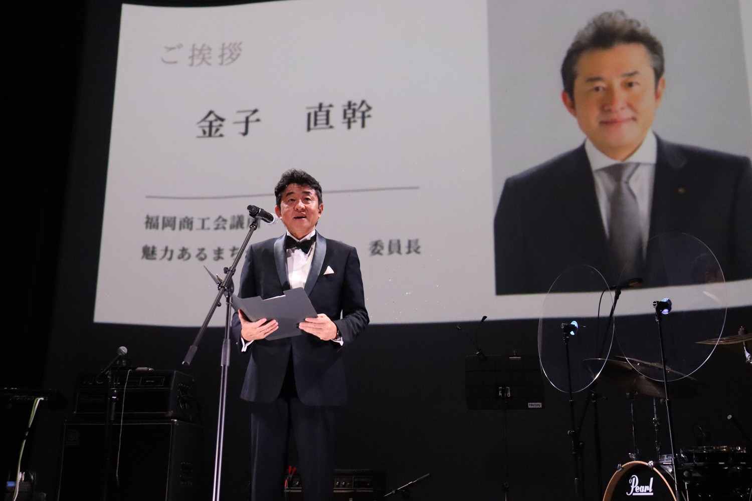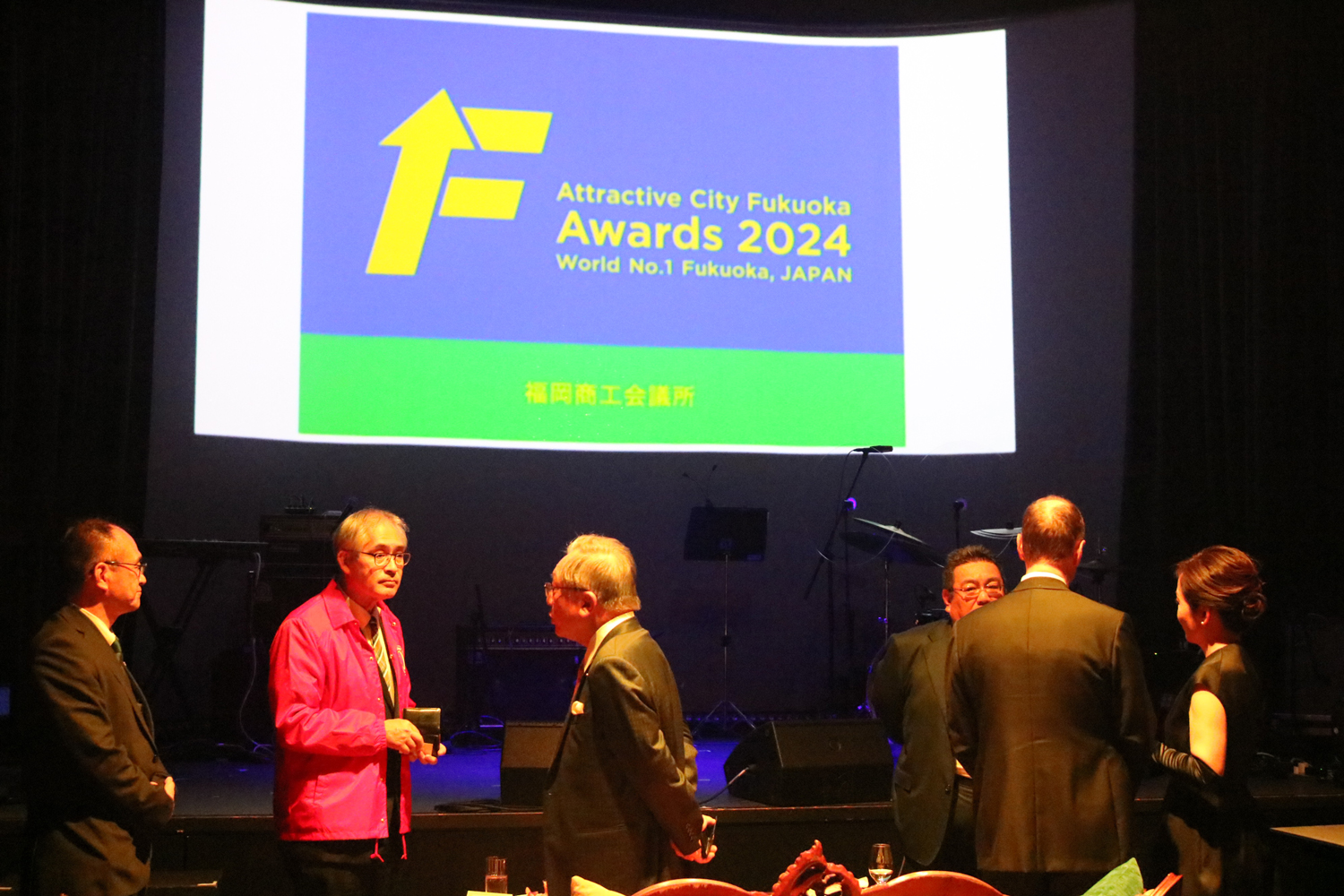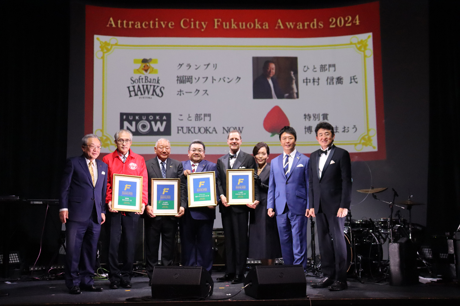 当所魅力あるまちづくり委員会(委員長=金子直幹・福岡トヨタ自動車㈱ 代表取締役社長)は12月2日、「Attractive City Fukuoka Awards 2024 ~World No.1 Fukuoka, JAPAN~」をTHEATER010(博多区住吉)にて開催。 授賞式には、福岡市・高島宗一郎 市長(昨年度グランプリ受賞)をはじめ、谷川会頭、金子委員長など37名が出席。受賞者による取組み発表では、受賞者の長年にわたる活動や今後の抱負に対して、会場から称賛の声が上がった。また、授賞式を彩るオープニングアクトでは、福岡市出身の若手アーティスト・荒谷翔大氏らによる一夜限りのパフォーマンスに会場全体が魅了された。