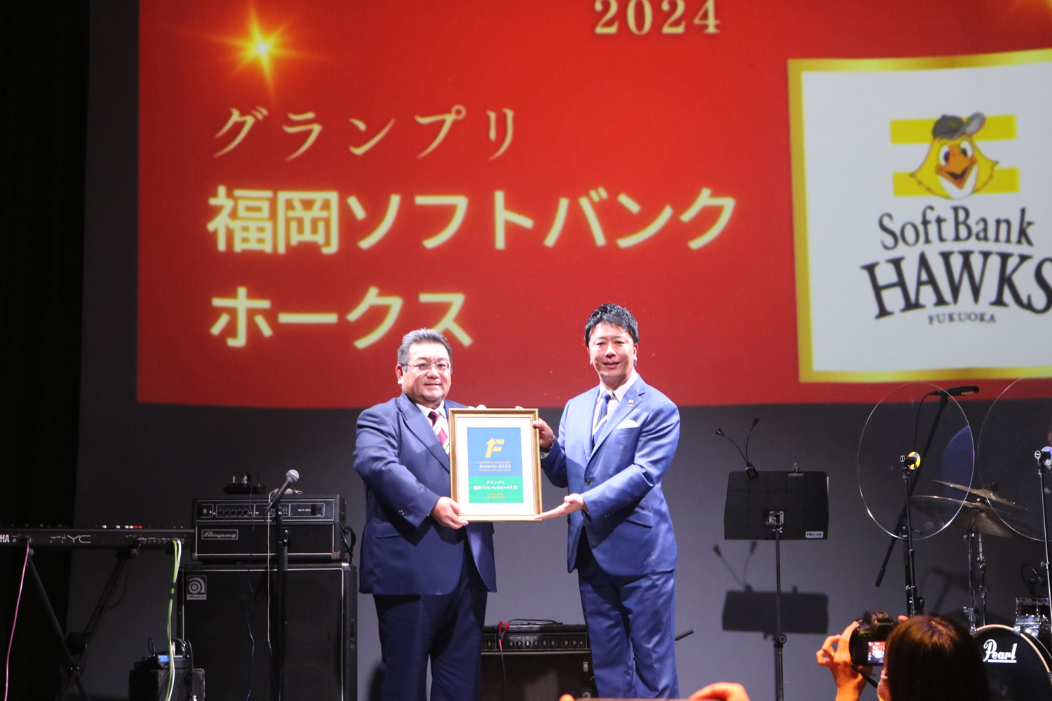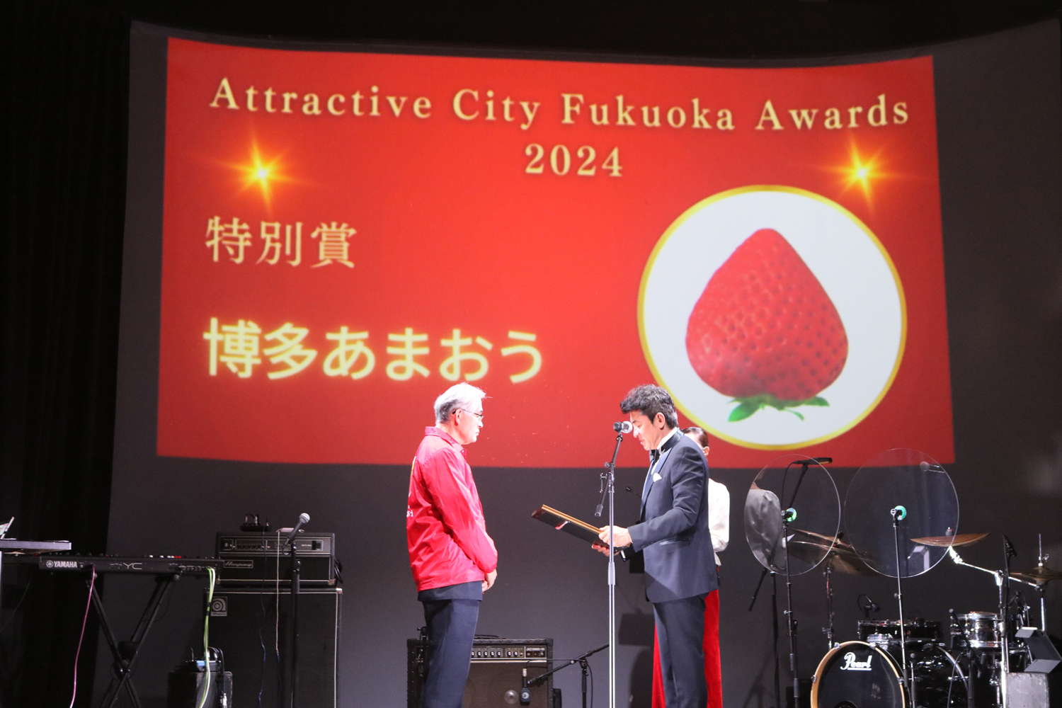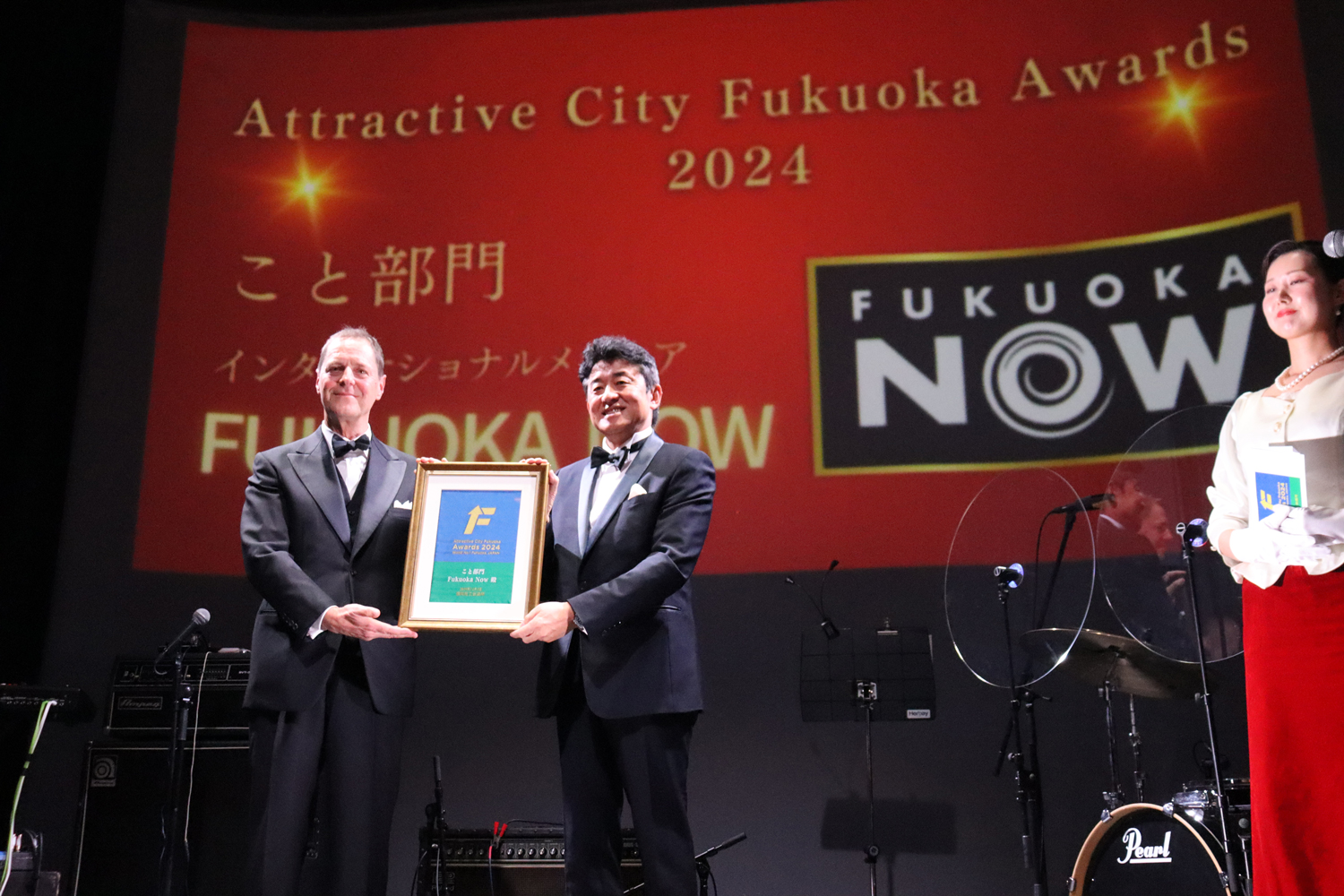 当所魅力あるまちづくり委員会(委員長=金子直幹・福岡トヨタ自動車㈱ 代表取締役社長)は12月2日、「Attractive City Fukuoka Awards 2024 ~World No.1 Fukuoka, JAPAN~」をTHEATER010(博多区住吉)にて開催。 授賞式には、福岡市・高島宗一郎 市長(昨年度グランプリ受賞)をはじめ、谷川会頭、金子委員長など37名が出席。受賞者による取組み発表では、受賞者の長年にわたる活動や今後の抱負に対して、会場から称賛の声が上がった。また、授賞式を彩るオープニングアクトでは、福岡市出身の若手アーティスト・荒谷翔大氏らによる一夜限りのパフォーマンスに会場全体が魅了された。