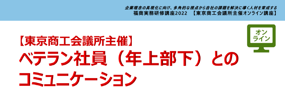 東京商工会議所が主催するライブ配信型オンライン研修が、福岡商工会議所会員であれば、東商会員料金にて受講可能です。