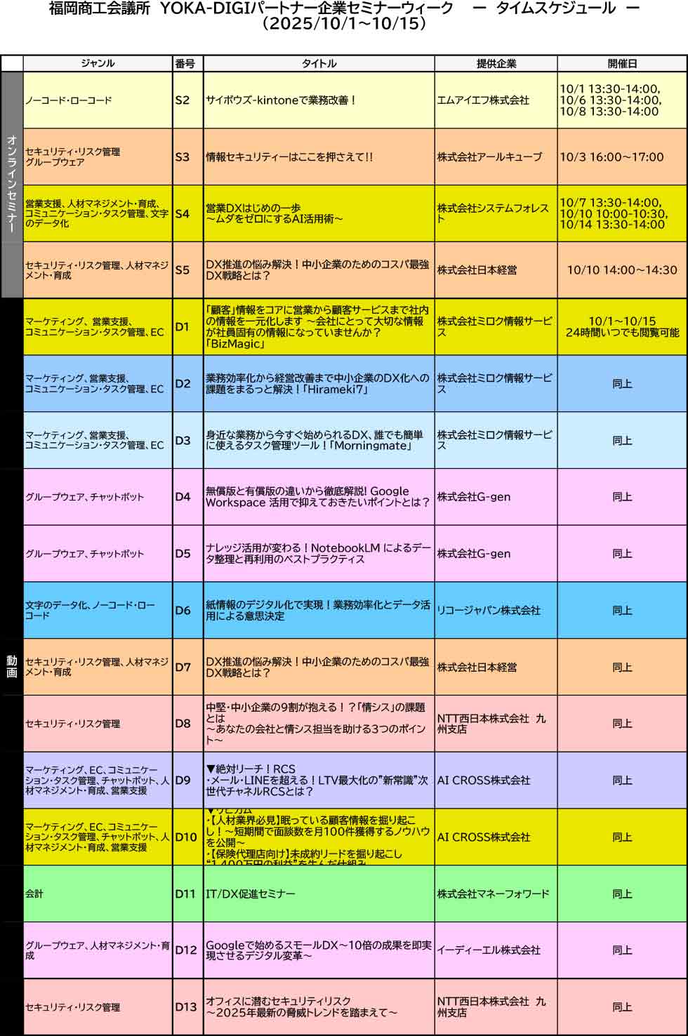 YOKA-DIGIパートナー企業による各種セミナー・動画によるツール紹介を期間限定でいたします。