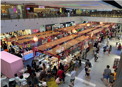 周辺にはHDB(公営住宅)が密集しており、日常消費を中心とした安定した集客力を誇ります。MRT2路線直結、バスインターチェンジとも屋内で完全接続という抜群のアクセスで、毎日多くのローカル客が訪れます。特に夕方や週末には家族連れや若年層で非常に賑わい、ホリデーシーズンには地域最大級の人流が期待できます。