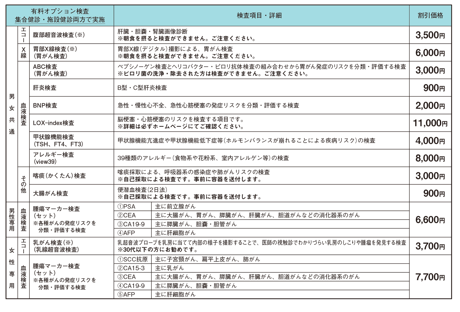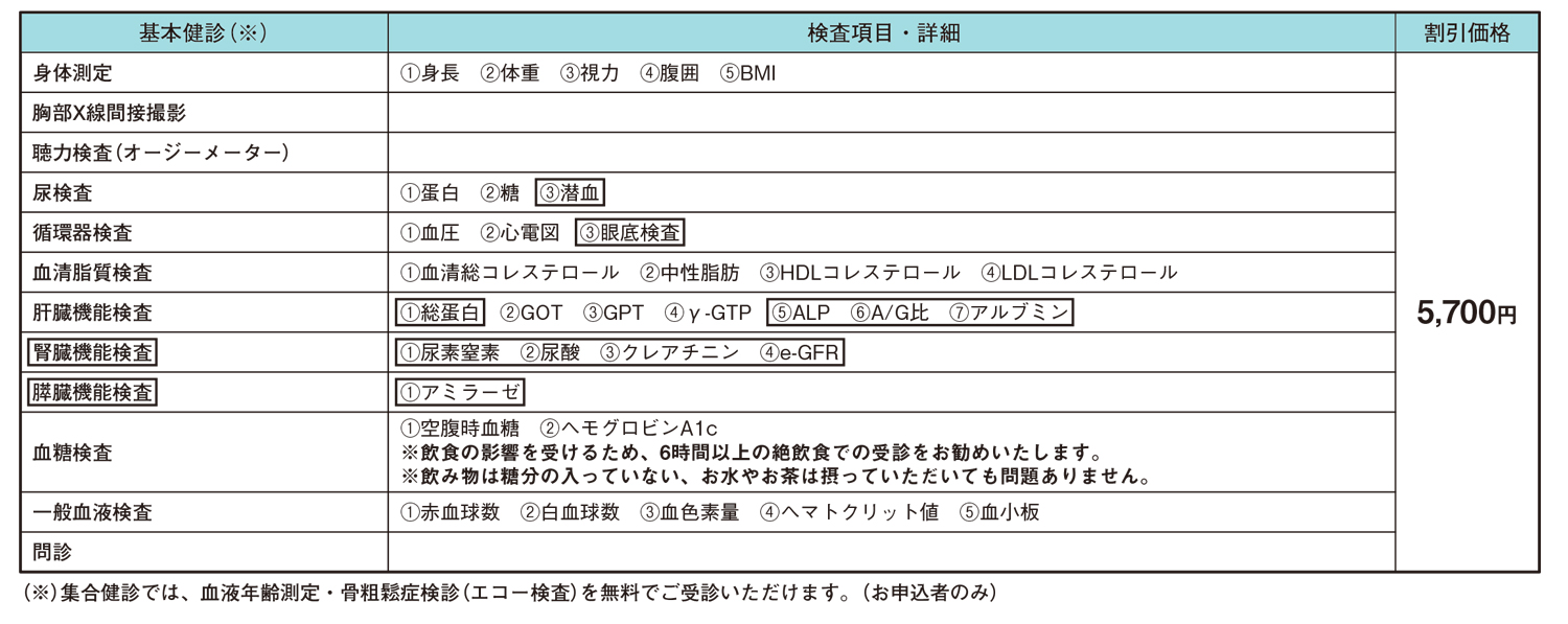 当所では、「法定健診」を上回る充実した内容の「生活習慣病健診」を、割引価格で実施しております。